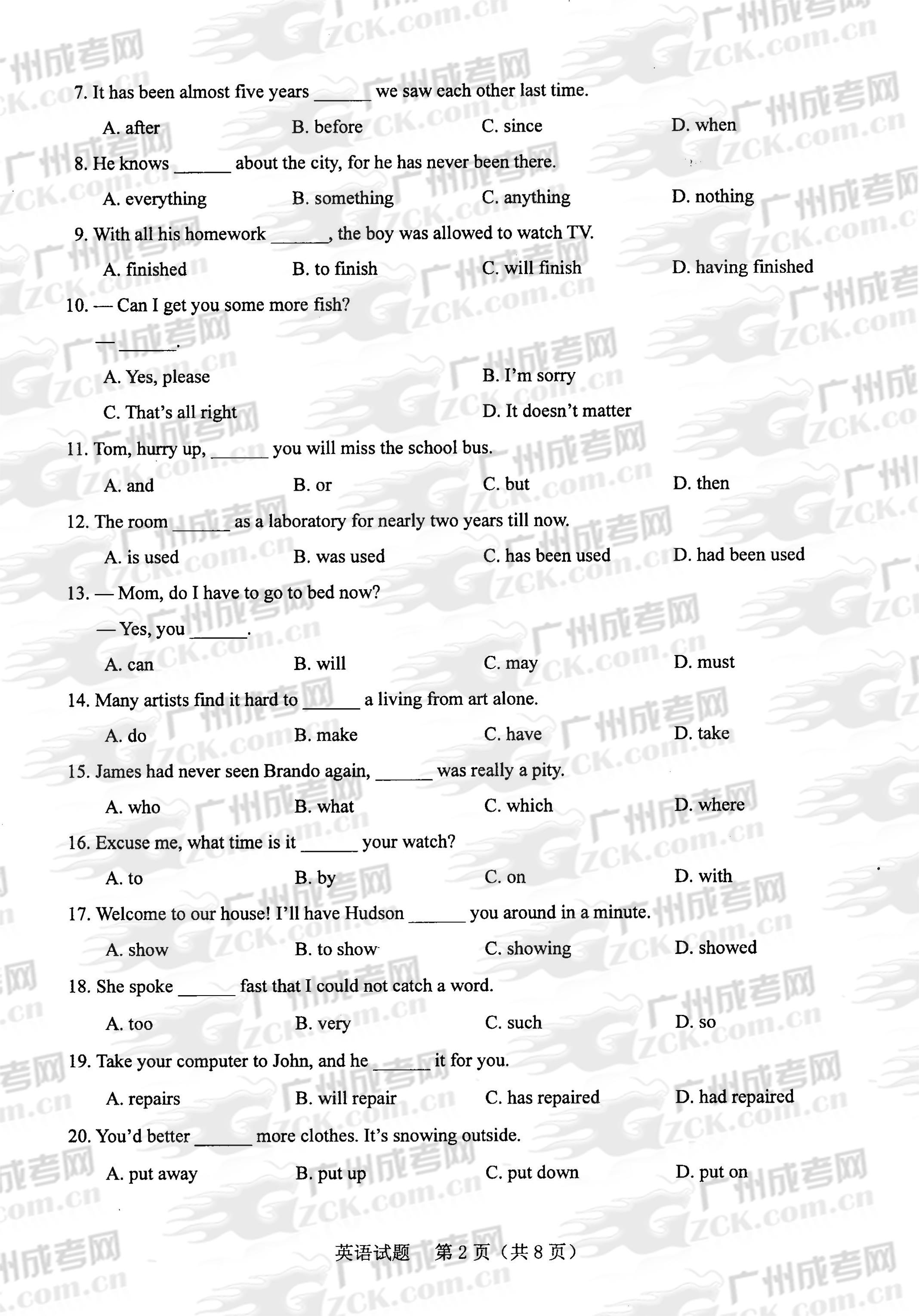本文标签:广东成人高考模拟试题高起点成人高考2013年统一考试英语试题
